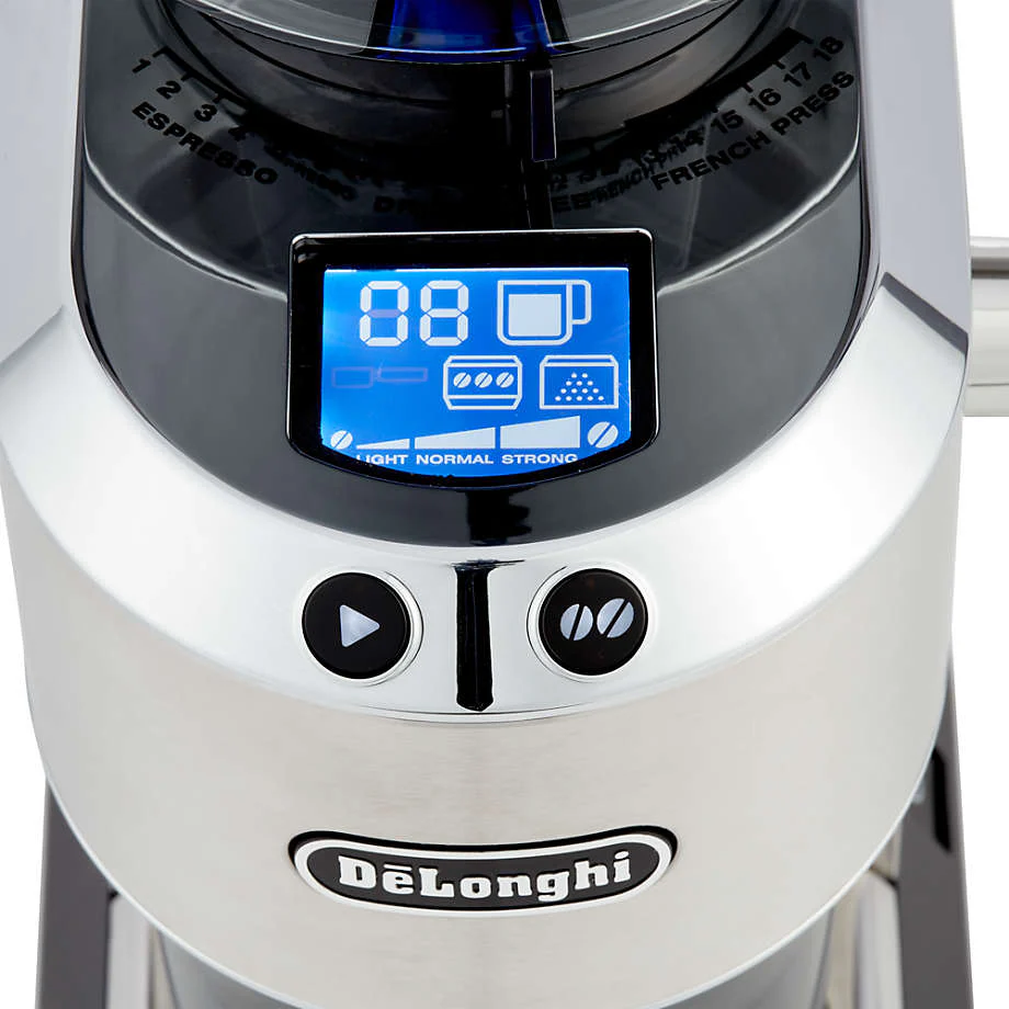 The rich fragrance of freshly ground beans holds the promise of an exceptional cup of espresso. The Dedica Stainless Steel Conical Burr Grinder with a digital LCD display and 18 variable settings for espresso, drip coffee/pour over and French press, you can customize your grind like a professional. Grind a single espresso directly into the portafilter, or grind up to 14 cups and keep them fresh in the included storage container.
